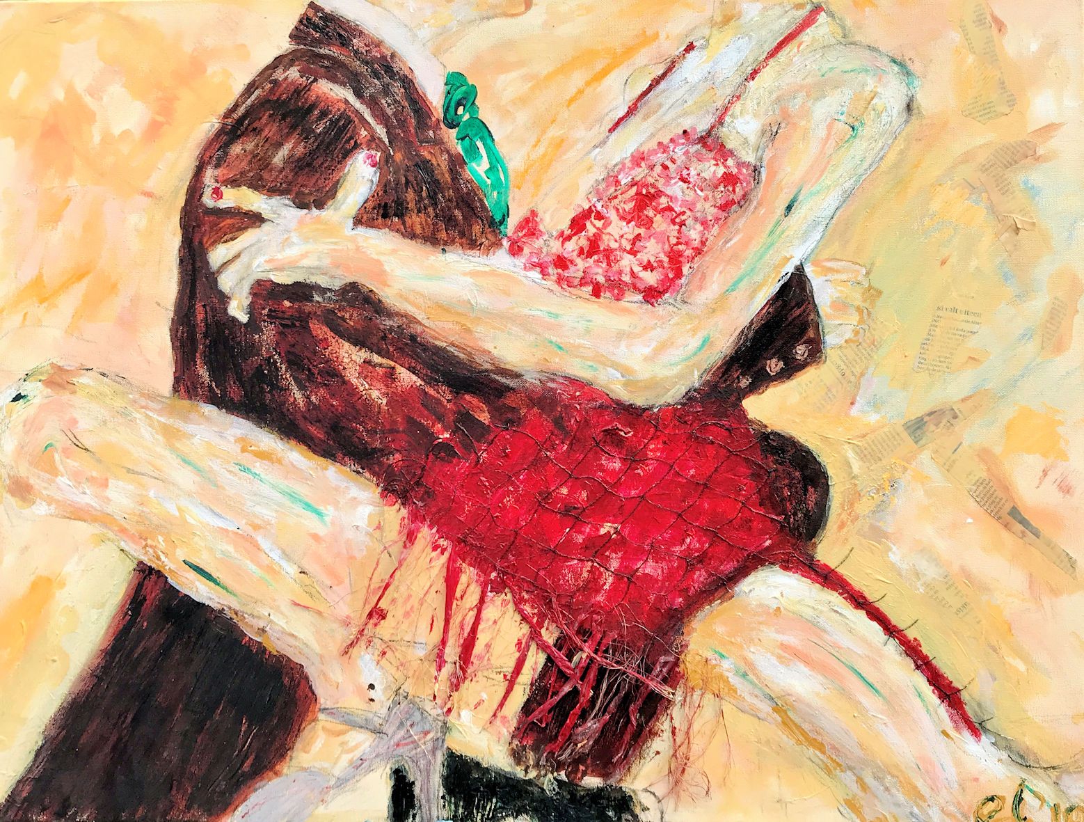 Kleur en beweging zijn belangrijk voor de sfeer en betekenis van de schilderijen. Intense en warme kleuren geven vaak richting aan het onderwerp: mensen die zich willen verbinden, die zich afsluiten of die verstillen.