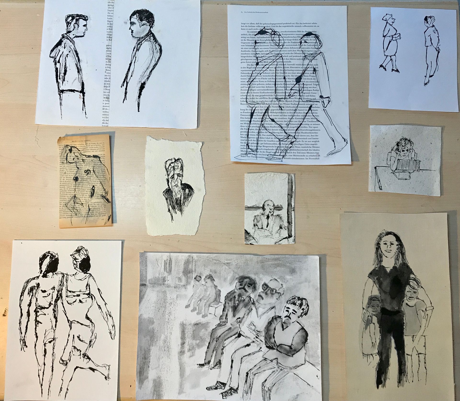 Soms gebruik ik een combinatie van inkt, houtskool en verschillende soorten krijt.